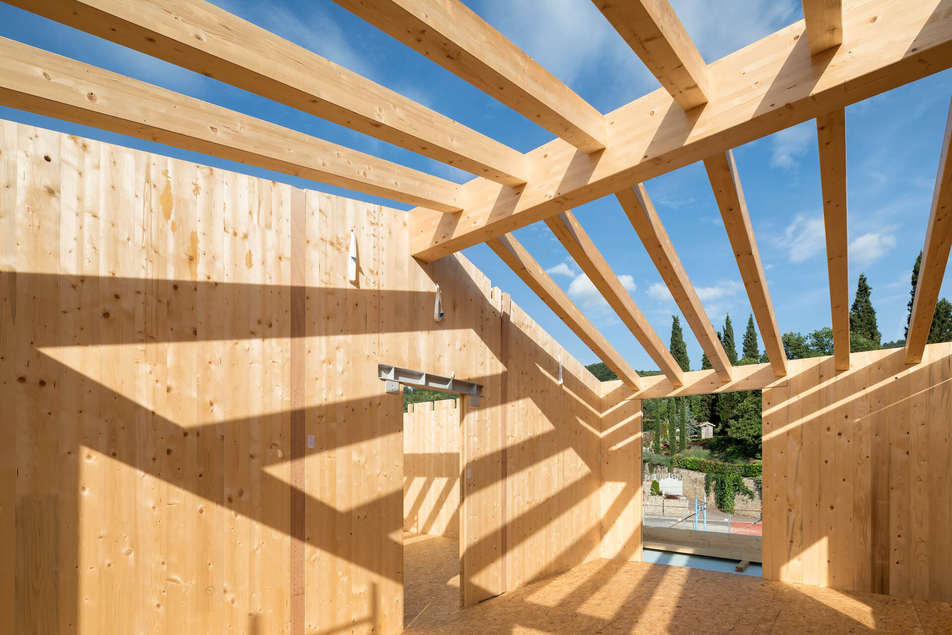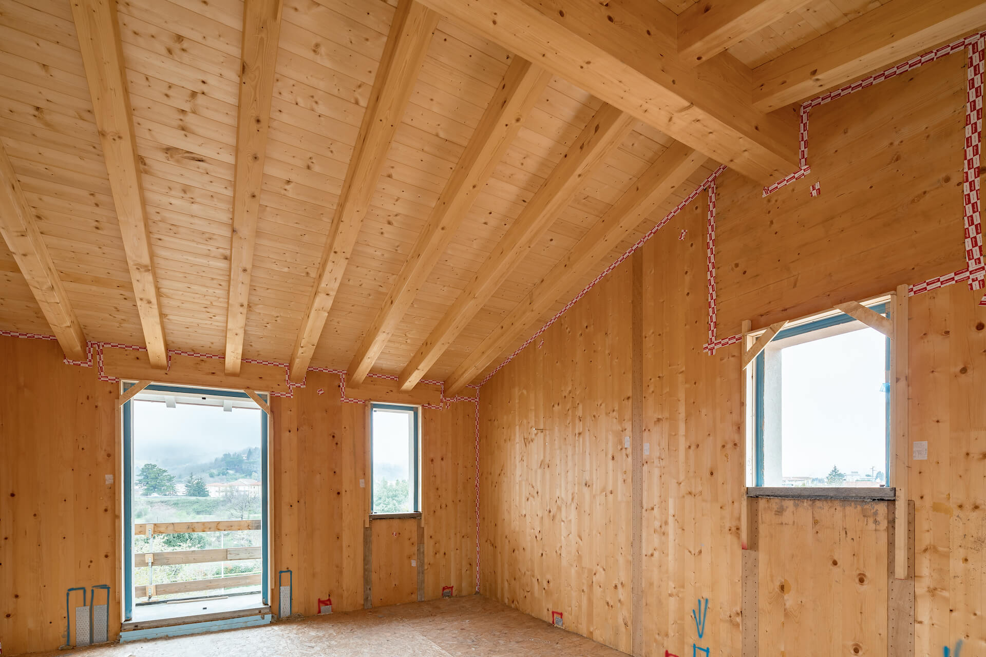 Per i nostri edifici in legno abbiamo scelto di adottare la tecnologia X-Lam che, grazie a una struttura di pannelli in legno costituiti da strati incrociati incollati tra loro, rappresenta un sistema costruttivo altamente affidabile, grazie alla sua solidità e capacità di risposta alle azioni sismiche.